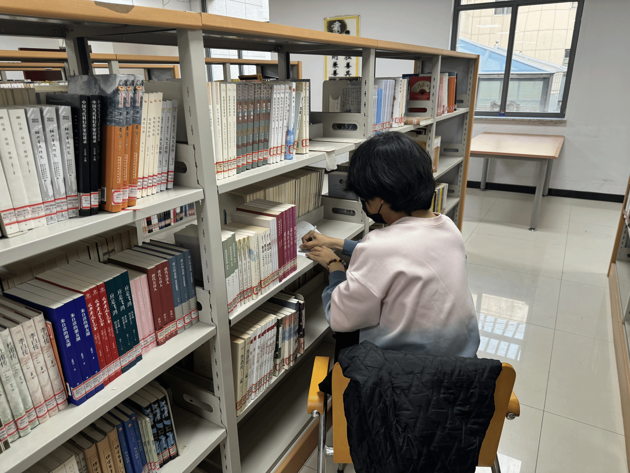 活动前期,图书馆老师通过专题培训,向志愿者们详细讲解了图书分类规则、书架整理标准及册数登记流程,确保每位参与者都能精准掌握“中图法”分类标识、书脊定位技巧与数据记录规范。活动期间,志愿者们利用课余时间对图书进行清点工作,分工协作、默契配合:有的蹲身整理低层图书,将错位、倒放的书籍一一归位;有的手持登记表格,逐架核对图书ISBN编号与册数,仔细标注缺失、破损情况。面对数十万册的藏书量,志愿者们始终保持耐心与细致,用专注与坚持展现了我校学子的责任担当。