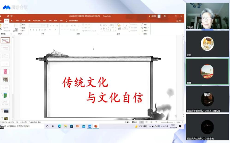 为引领我院学生骨干传承和弘扬中华优秀传统文化,坚定广大青年团员文化自信,引导其认知传统、尊重传统、弘扬传统,增进爱党、爱国情感。我院团委于6月24日举办“第十三期青年马克思主义者培养工程”大学生骨干培训班——优秀传统文化进校园专题讲座,此次讲座采用线上方式进行,特邀请到内蒙古艺术学院二级教授李树榕主讲,团委副书记曹睿主持,院第十三期“青马班”的400余名学员线上聆听。