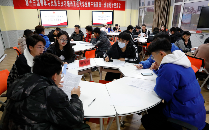 为进一步加强学生干部队伍建设,推进青年马克思主义者培养工程,2021年12月13日下午我院于教学楼D101开展了第十三期青年马克思主义者培养工程大学生骨干培训班分组讨论交流会。会议由团委组织部副部长杨杨老师主持,各系、部以及院级学生组织选派的共计37名优秀青马班学员代表参与会议。
