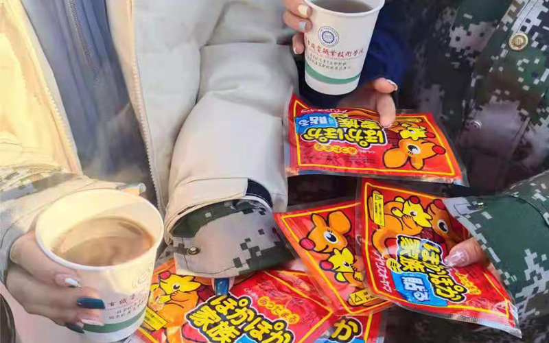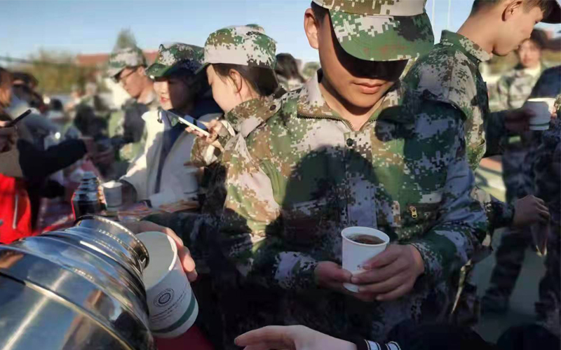 2021年10月16日下午,院学生骨干在军训休息整顿时间为大一新生送去热水和暖宝宝,传递温暖关怀,帮助同学们驱寒。当温暖送到同学们的手中,脉脉温情都有了归属感。一杯杯热气腾腾的热水,一份份无微不至的关怀,驱散了北方瑟瑟秋风带来的寒意,也温暖了每一位参训新生的心。