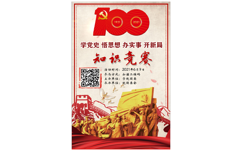为庆祝中国共产党建党100周年,重温党的光辉历程,激发我院学生学党史、知党史的热情,我院团委于6月9日组织开展“学党史、悟思想、开新局、办实事”线上党史知识竞赛,在校生所有学生党员、发展对象、入党积极分子,以及2019级和2020级各班学生代表参加了此次活动。