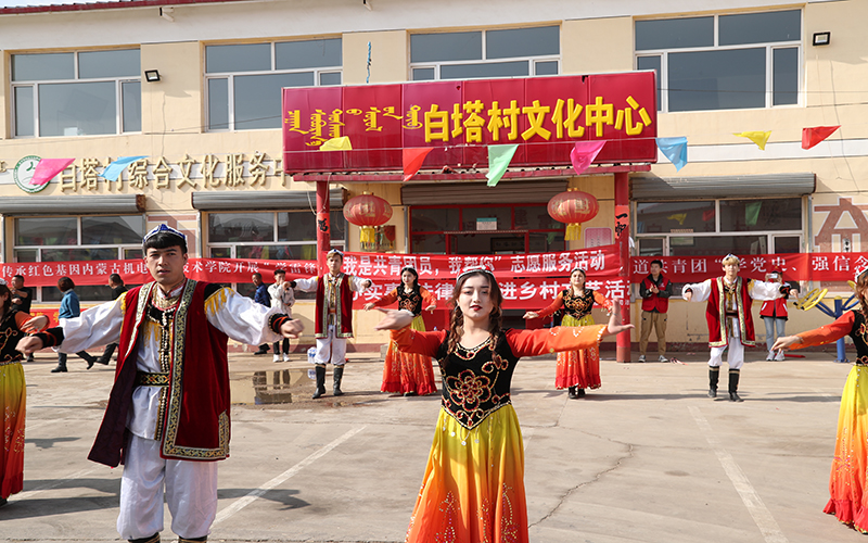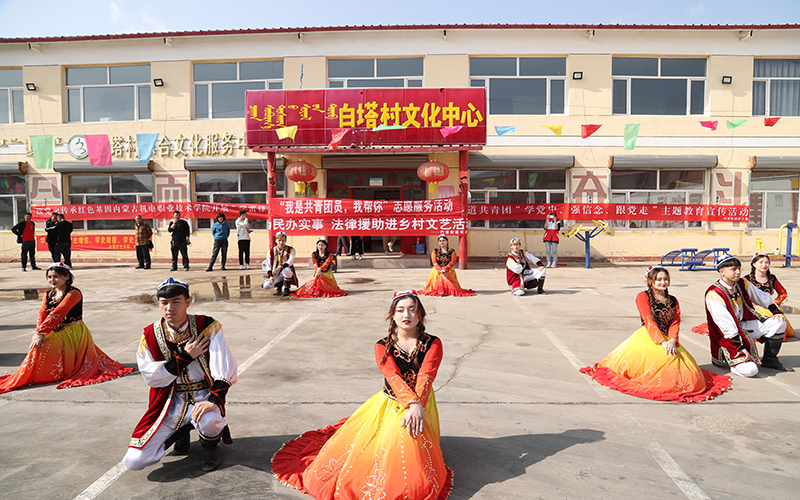 座谈会后,大家来到了白塔村广场,由我院团委大学生艺术团的学生演员们为村民表演了精心排练的新疆舞和歌曲《守望相助》等文艺节目,现场气氛活跃,赢得了观看群众的阵阵喝彩。同学们的精彩表演充分展示了当代大学生的活力与激情,展现了我院学生朝气蓬勃、昂扬向上的精神风貌,同时也极大地丰富了白塔村村民的精神文化生活,为共创文明城镇贡献学校的力量。