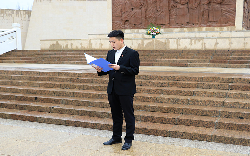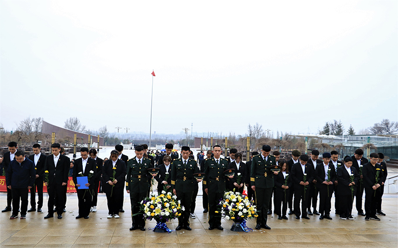 随后,现场团员在院团委副书记曹睿的带领下重温了入团誓词,并整齐列队,拾级而上,向革命烈士们敬献花束,庄重地为烈士们默哀鞠躬。