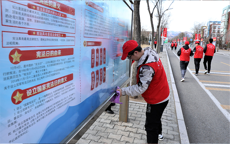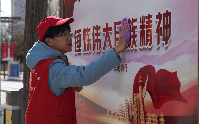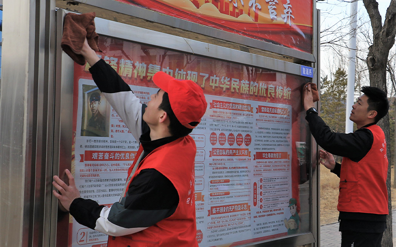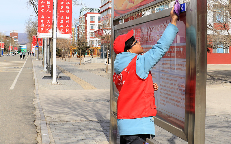 擦拭宣传栏、指示牌,整治脏、乱、差。