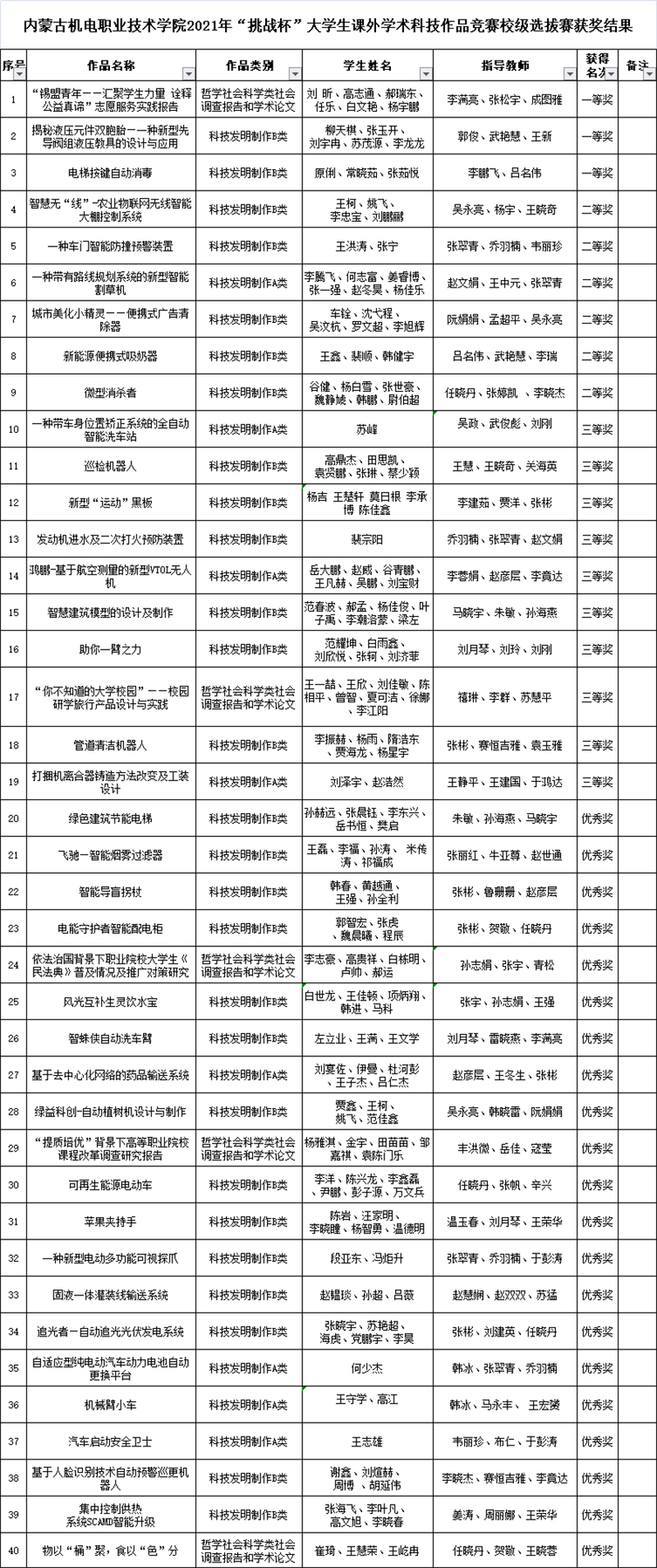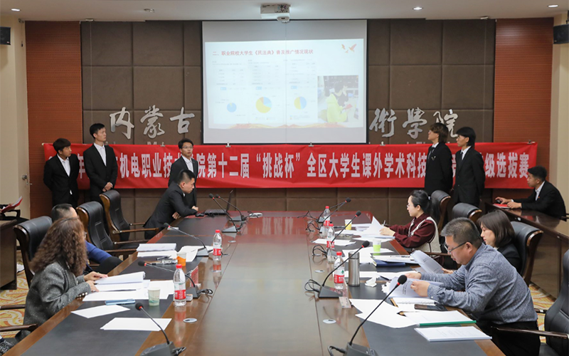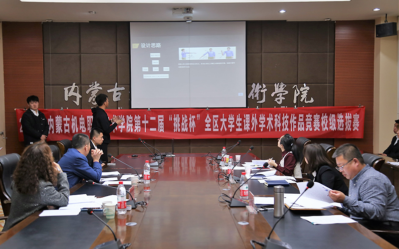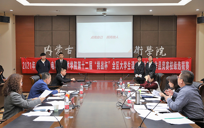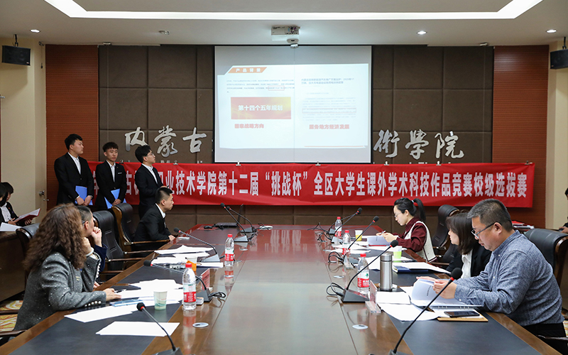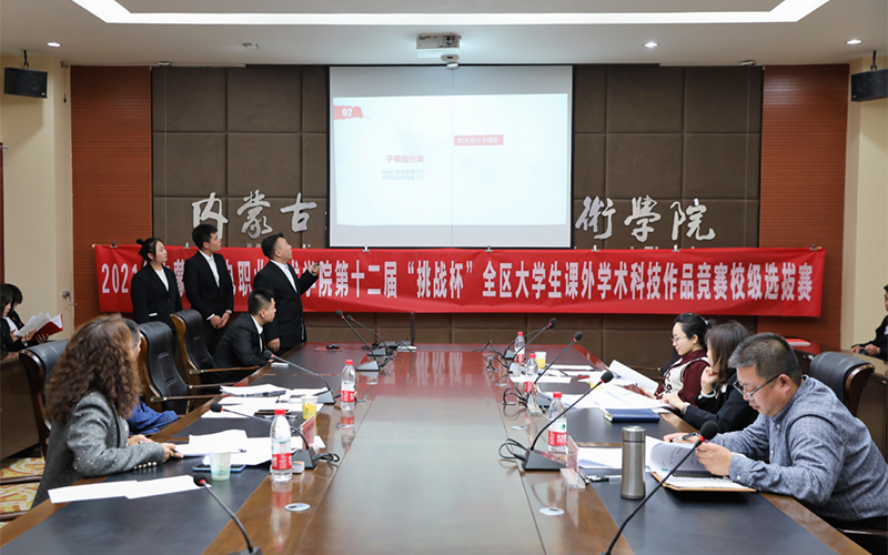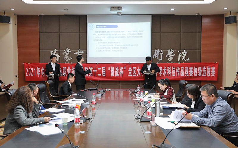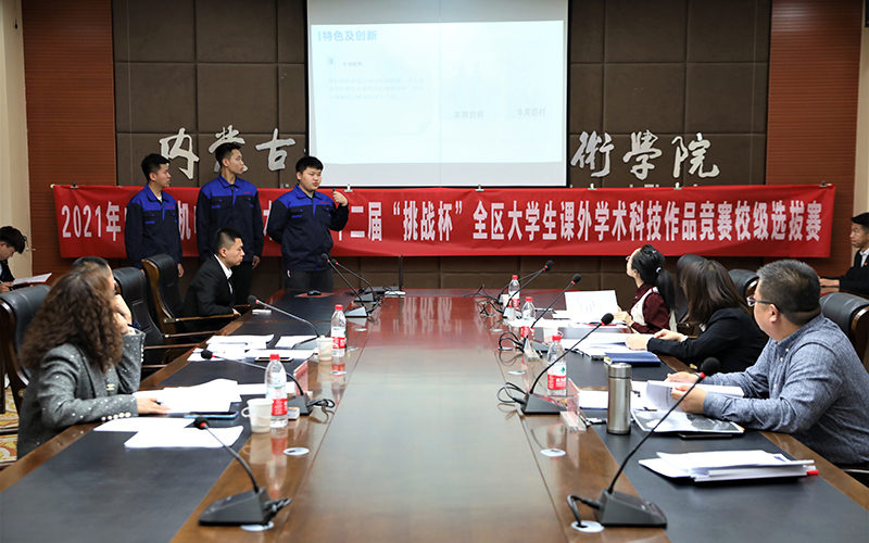 为深入学习贯彻习近平新时代中国特色社会主义思想,学习贯彻党的十九届五中全会精神和自治区党委十届十三次全会精神,有效搭建学生创新创业平台,发现、培育和选树创新创业人才,增强学生创新创效、就业创业和职业转换能力,学院开展了2021年“挑战杯”大学生课外学术科技作品竞赛校级选拔赛。本次比赛由学院团委承办,经过学生申报、系部推荐、校赛初评,于3月25日进入了最后决赛环节——路演答辩。担任本次路演的评委有:内蒙古贝莱德产业引导基金管理公司、全国产教融合创新创业大赛评审委员会专家郭迎春,内蒙古政信资产管理有限公司总经理、高级国际财务管理师常宝红,教务处副处长郭春明,校企合作与就业服务处副处长高岗强,科技与职教研究中心科研管理科科长吕文春。