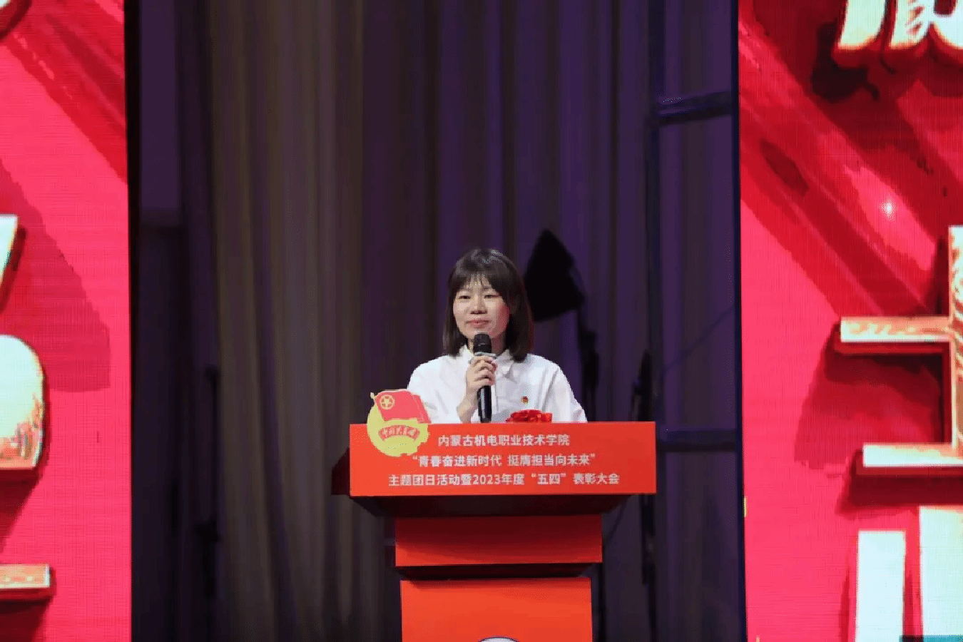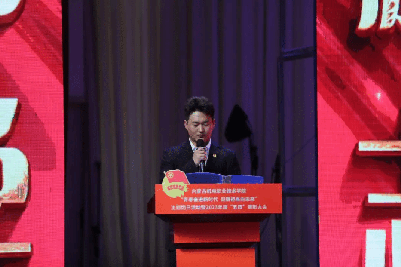 张婷凯代表学院团委对受表彰的先进集体和个人表示祝贺,要求团员青年牢记习近平总书记嘱托,争做有理想、敢担当、能吃苦、肯奋斗的新时代好青年,把奋斗作为亮丽青春的厚重底色,弘扬“笃学励志 精技强能”的校训,以更加饱满的热情和更加坚定的信念,为共同书写内蒙古机电职业技术学院青年工作的崭新篇章,为实现中华民族伟大复兴的中国梦贡献青春力量。