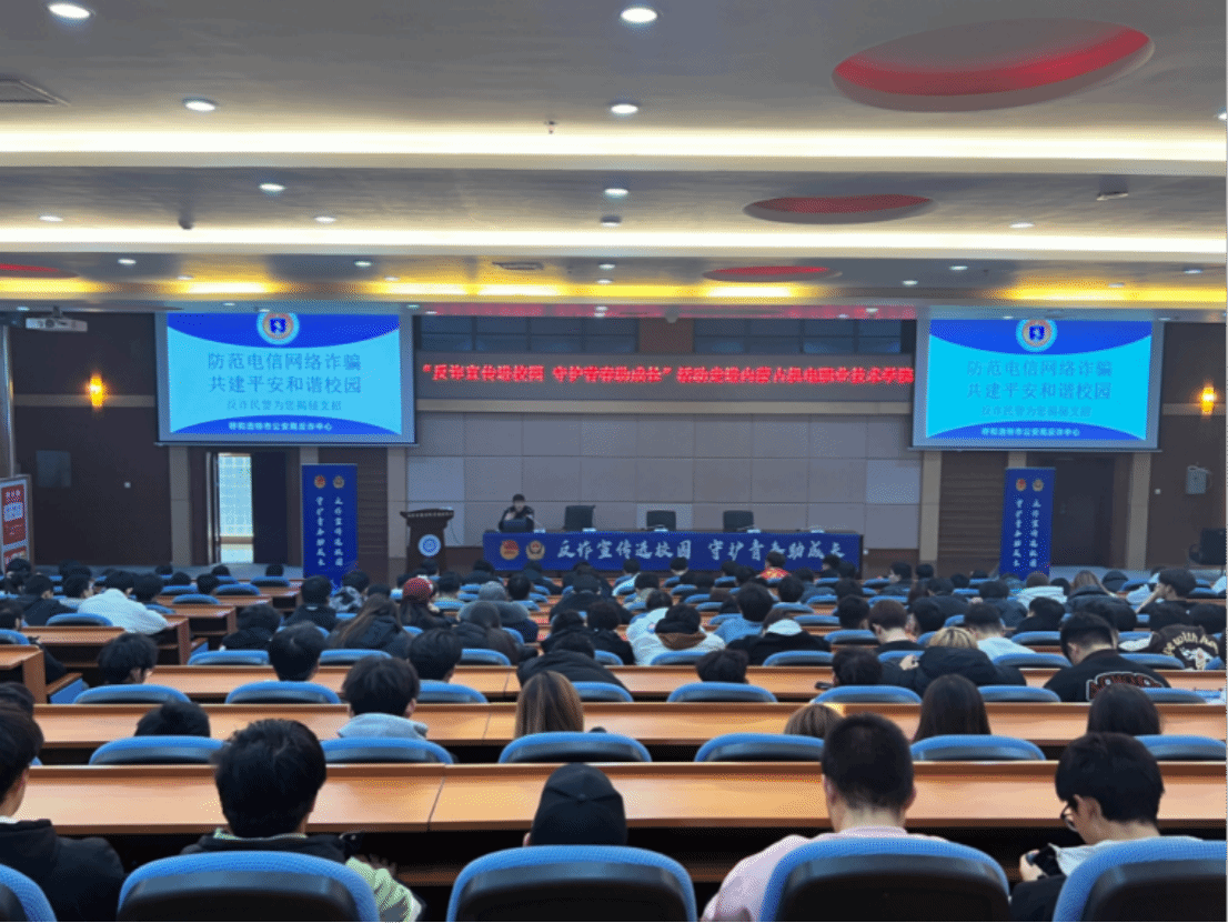 案例为据,揭秘诈骗手法。自治区公安厅刑事侦查总队的警官则以案说法,结合一系列反诈宣传短片,对刷单返利、冒充公检法、冒充熟人、游戏及网络交友类等高发电信诈骗案件进行了深入剖析,郑重提醒同学们切勿被蛊惑参与电信网络诈骗,坚决杜绝出租、出售、出借个人电话卡、银行卡等违法行为,并牢记保护个人信息、不点击不明链接、不轻信高额回报等安全准则。