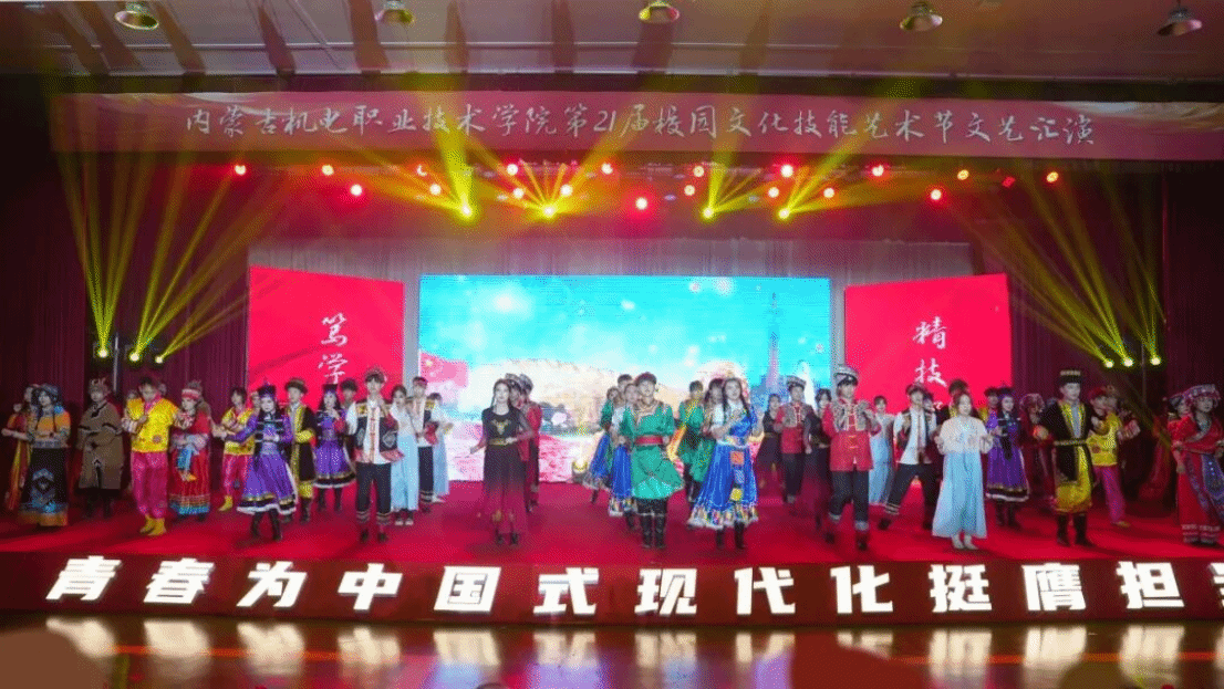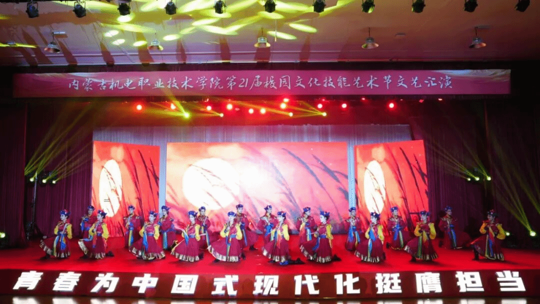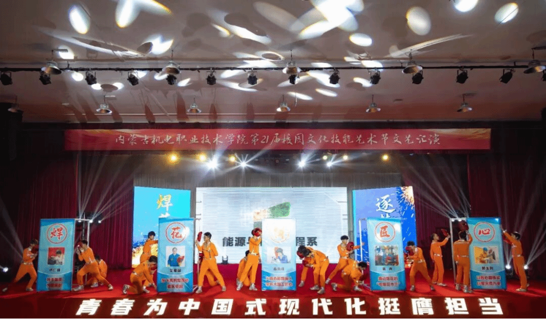 本次汇演以“青春为中国式现代化挺膺担当”为主题,分为“青春聚力颂北疆 薪火相传续新篇”“石榴花开心向党 红色基因润初心”“青春筑梦新时代 挺膺担当向未来”三个篇章,通过歌舞、情景剧、职业舞蹈等多元形式,生动展现内机电学子昂扬向上的精神风貌与时代担当。