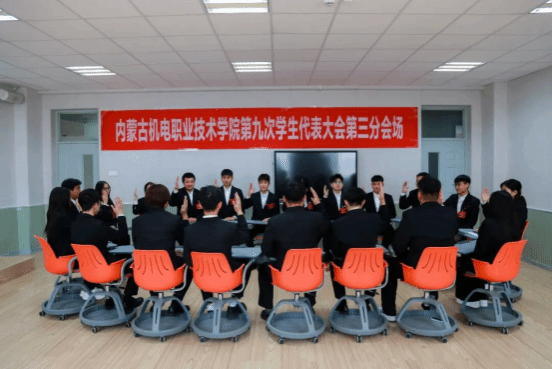 会上,与会代表听取、审议、以举手表决方式通过了《内蒙古机电职业技术学院学生会章程(草案)》《学生代表大会选举办法(草案)》《内蒙古机电职业技术学院第九届学生委员会委员候选人名单(草案)》《内蒙古机电职业技术学院第九届学生委员会选举总监票人、监票人名单(草案)》。111名代表们在总监票人和监票人的监督下,以无记名投票方式,庄严投下选票,选举产生了内蒙古机电职业技术学院第九届学生会委员。大会当场公布了当选委员名单。