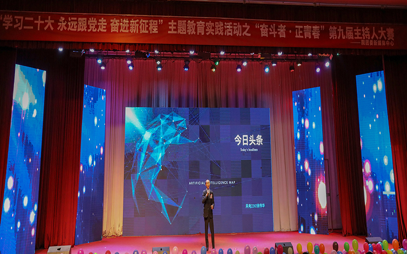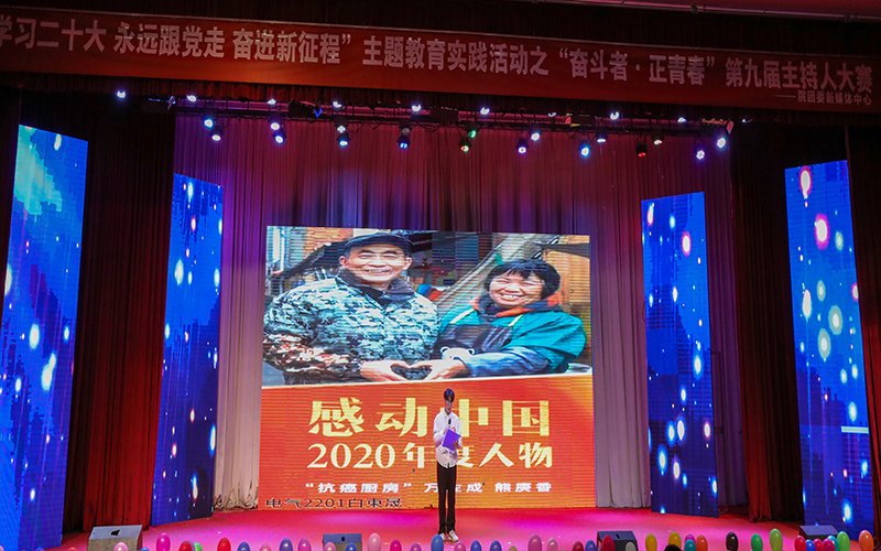 2023年4月25日晚上19点,由学院团委新媒体中心组织开展的“奋斗者·正青春”第九届主持人大赛决赛圆满结束!大赛分为模拟主持、即时评述或才艺展示、词汇串联三个环节。本次大赛邀请了团委、各系团学办公室副主任、各系辅导员,共计8名教师担任评委。