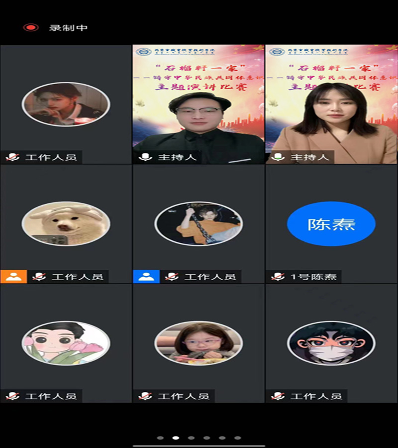 比赛采用初赛视频投稿,决赛线上直播评比的形式开展。自初赛宣传开始,便受到了全院各族青年团员的广泛关注,共有三百多名同学报名参赛,涵盖了我院各个系部各个年级。参赛选手在初赛、复赛中以生动的语言、饱满的热情抒爱国情怀、展青春风采,或从自身成长经历出发,或从自己专业角度出发,从不同角度分享了自己与祖国的故事,或者对铸牢中华民族共同体意识的理解和感悟。