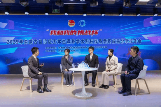 11月26日,内蒙古自治区团委、内蒙古自治区学联共同主办的“我和我的挑战杯”——“青春筑梦 科创报国”主题分享交流会在内蒙古财经大学成功举办。本次活动涵盖“青春筑梦 科创报国”科学家精神分享、“我和我的挑战杯”科创故事分享、“成长分享・心路历程”访谈三大环节。