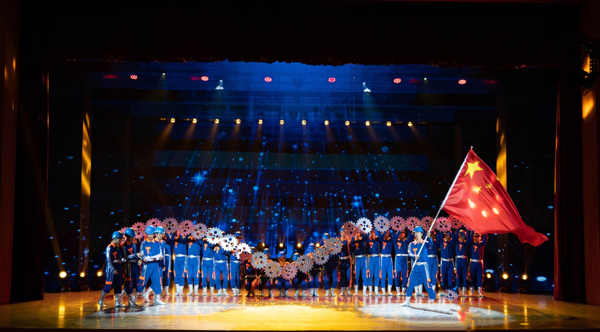 灯光亮起,一群身着蓝色工装的学子成为舞台焦点。他们用整齐而富有力量的肢体语言,生动演绎机电人的实训日常——从装配零件的专注到设备调试成功的欢欣,每个动作皆真挚动人。对技艺的执着、对专业的热忱,透过舞蹈直抵人心,引来掌声雷动。