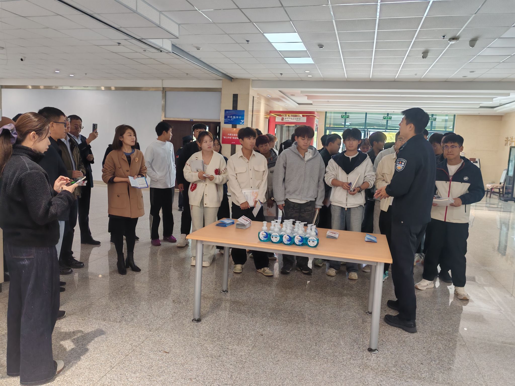 10月11日上午,学院安全工作处联合呼和浩特市公安局反诈中心、中国银行呼和浩特市新城支行,共同举办“守护你的钱袋子”金融安全进校园活动,通过布置展板、案例讲解、发放折页与现场咨询等多种形式,向同学们精准滴灌防诈知识,为同学们带来了一堂生动而实用的“金融安全必修课”。