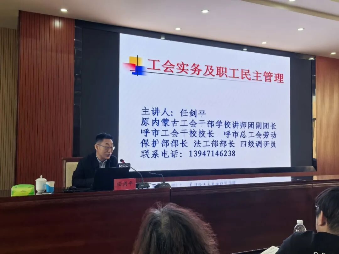 额尔敦巴雅尔围绕深入学习领会党的二十届四中全会精神、深刻领会全会对工会工作提出的一系列重要要求等四个方面作了系统阐释。报告内容翔实、论述深刻,引导参训干部进一步把握全会核心要义。任剑平则以“工会的重要性”“工会在民主管理中的作用”“教代会核心内容”为主线开展互动教学,使理论知识与实践需求紧密结合,有效加深了大家对工会民主管理职能的理解。培训还安排了团建环节,进一步增强了团队凝聚力。