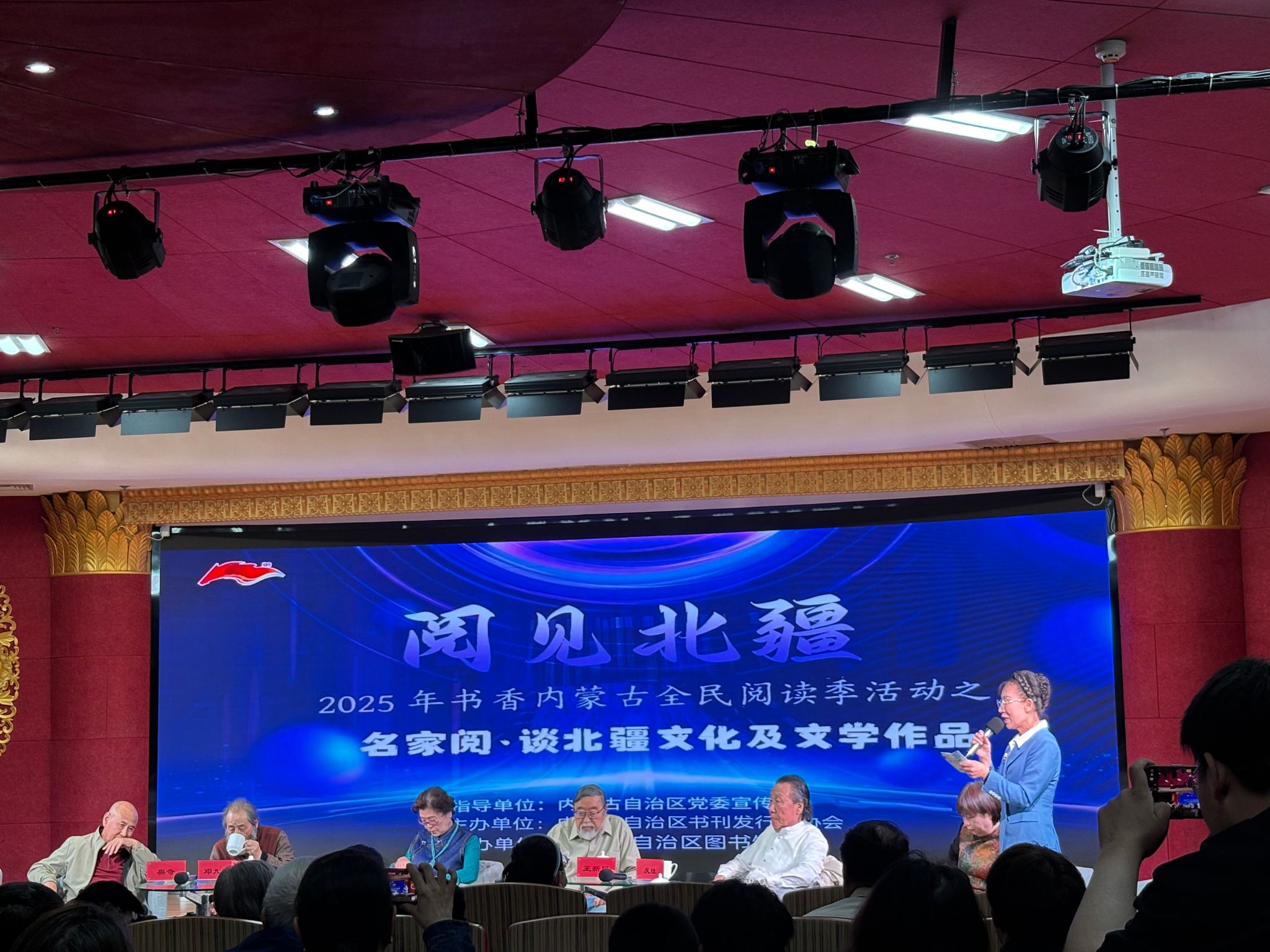 活动特邀邓九刚、萨仁托娅、王新民等内蒙古自治区知名剧作家与学者,围绕北疆文化、红色记忆与经典阅读开展深度分享。在互动环节,在场学生代表踊跃提问、分享了阅读感悟,并与专家合影留念。