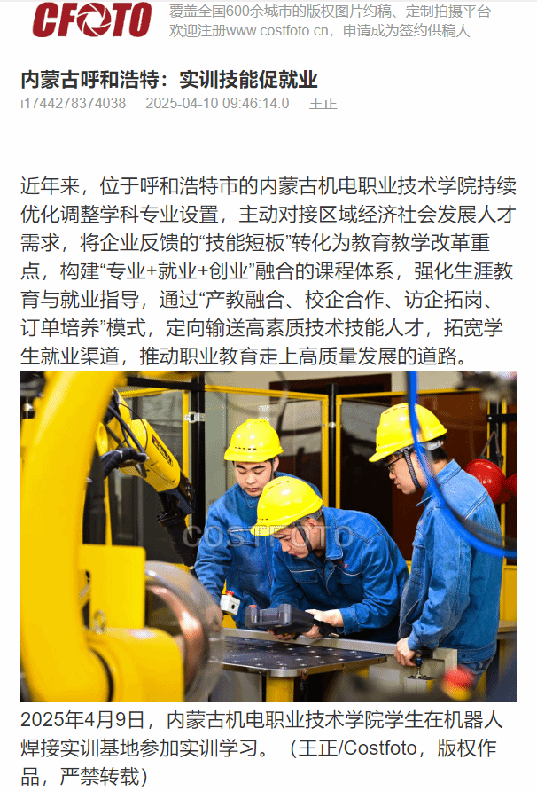 4月10日,光明日报、人民网、COSTFOTO等多家主流媒体以《实训技能促就业》为题,报道学院近年来,通过“产教融合、校企合作、访企拓岗、订单培养”模式,定向输送高素质技术技能人才,拓宽学生就业渠道,推动职业教育走上高质量发展道路的典型做法,一起来看~