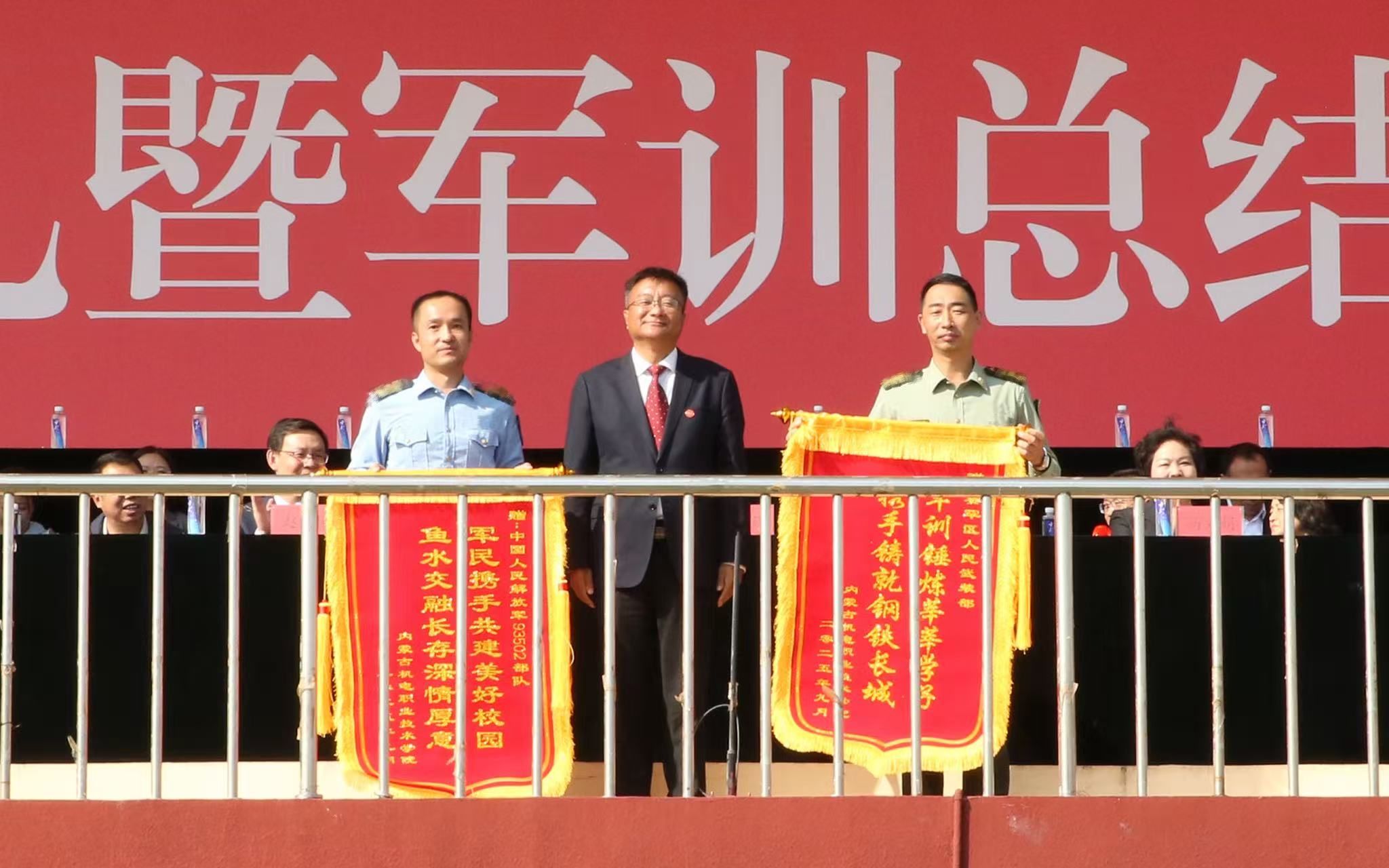 高军宣读了《内蒙古机电职业技术学院关于表彰2025级新生军训工作先进集体和先进个人的决定》。与会领导依次为获得各项荣誉的先进集体代表和先进个人颁发奖牌和证书,充分肯定了他们在军训期间的辛勤付出和卓越表现。