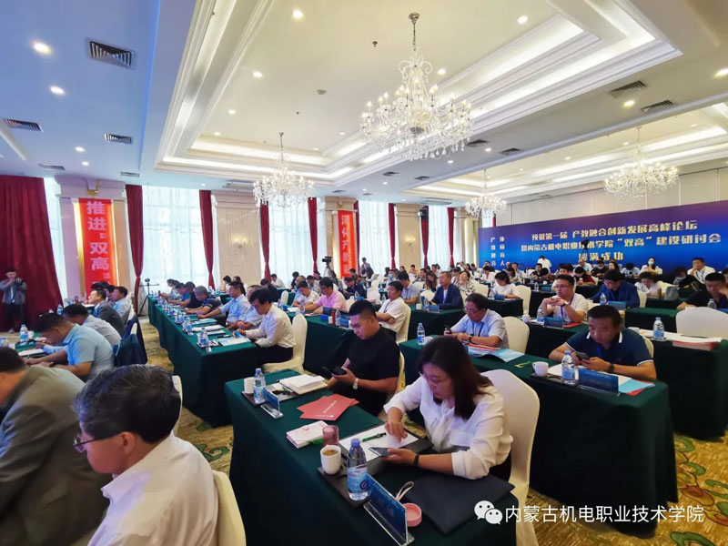 为深入贯彻《国务院办公厅关于深化产教融合的若干意见》精神,推进学院“双高建设”工作,2020年8月25日,由内蒙古机电职业技术学院主办、内蒙古中航睿通教育科技有限公司承办的以“融合 协同 共赢”为主题的第一届产教融合创新发展高峰论坛暨内蒙古机电职业技术学院“双高”建设研讨会在呼和浩特市隆重开幕。来自江苏、北京、内蒙古等多省的各行业企业30余家,包含“政、行、企、校”领导及专家在内的100余人参加了会议。