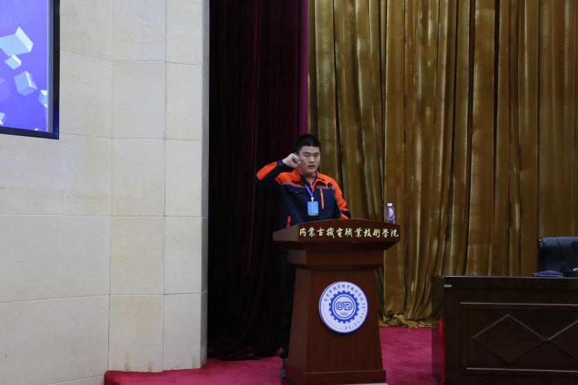 大赛裁判员郄伟代表全体裁判员宣誓,大赛参赛选手丁佳琪代表全体参赛选手宣誓,机械工业教育发展中心朱兵钺宣布大赛开幕。