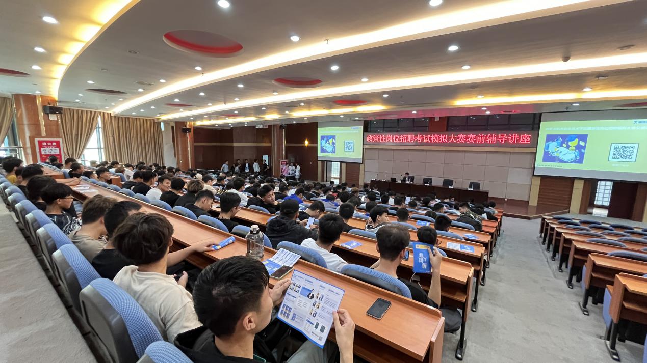 为培养我院学生树立家国意识与奉献精神,拓宽毕业生就业渠道,提升报考政策性岗位就业竞争力,推进学院毕业生实现更加充分更高质量就业,2023年9月21日,在学院图书馆报告厅开展了政策性岗位招聘考试模拟大赛赛前辅导讲座。