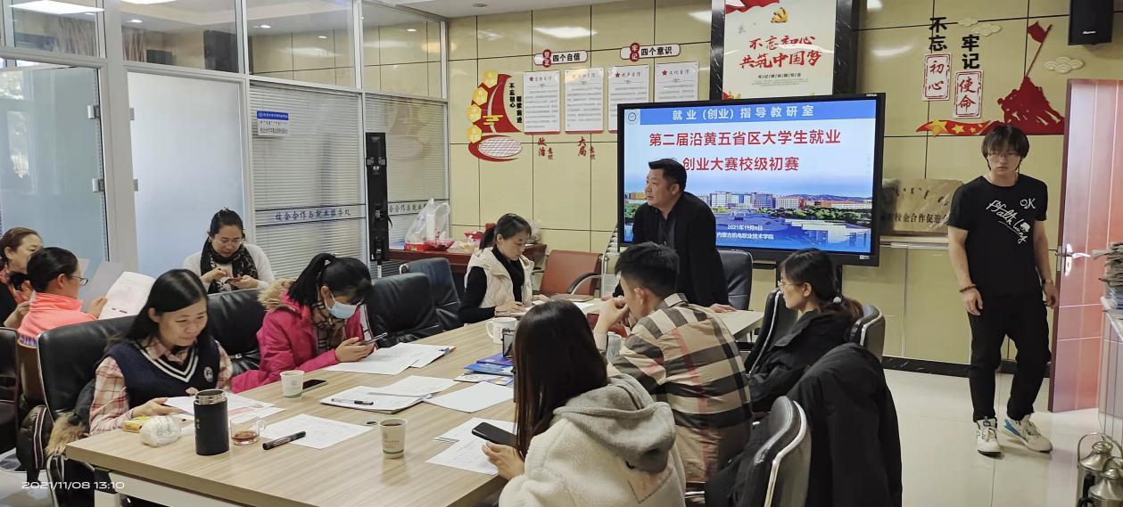 为深入学习贯彻习近平总书记关于高校毕业生就业工作的重要指示,进一步引导我院学生树立正确的“成才观、职业观、就业观”,合理规划职业生涯,促进我院有效地开展就业创业指导和服务工作,11月8日中午,第二届沿黄五省(区)大学生就业创业大赛校级初赛在校企合作与就业服务处会议室成功举办,校企合作与就业服务处处长、就业创业指导骨干教师对此次大赛进行与评审与指导。