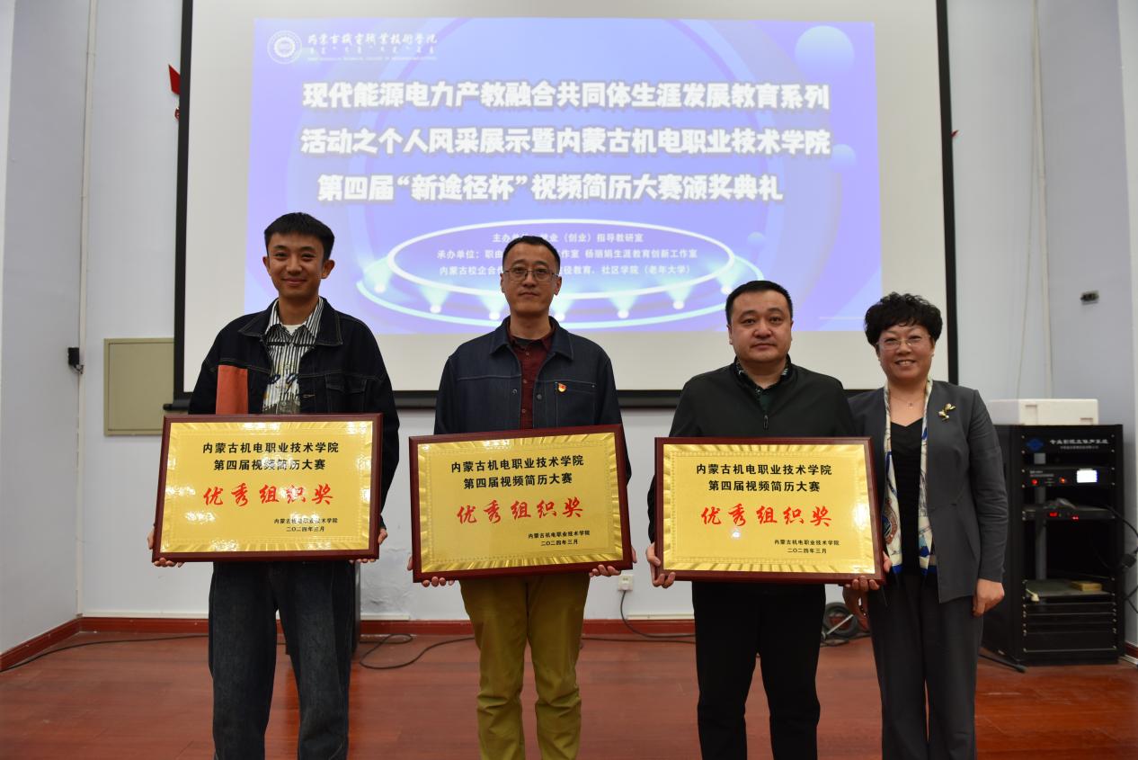 为贯彻落实内蒙古自治区高校学生就业创业服务中心《关于举办内蒙古自治区第四届大学生视频简历大赛的通知》(内教就服【2024】2号)精神,引导学生树立生涯发展主动意识,提高职业素质和求职能力,促进实现自驱型成长,4月1日就业(创业)指导教研室联合“职由你”生涯咨询工作室、杨丽娟生涯教育创新工作室、内蒙古校企合作促进会、社区学院(老年大学)共同举办了“现代能源电力产教融合共同体生涯发展教育系列活动之个人风采展示暨学院第四届“新途径杯”视频简历大赛颁奖典礼。学院党委委员、副院长刘玲出席了此次活动。