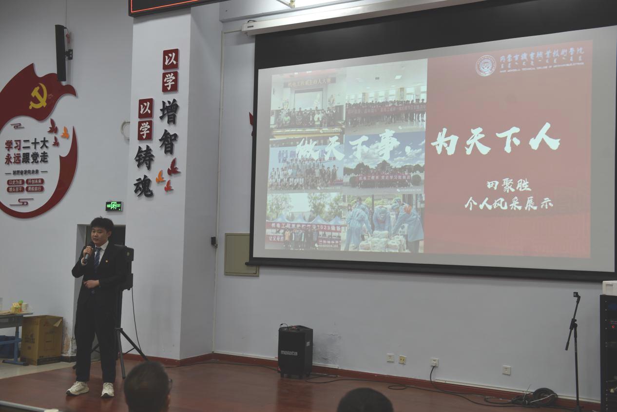 主题讲座之后,学院第四届视频简历大赛获奖选手进行了个人风采展示。同学们通过自己的学习成绩、参与赛事、实习实践等多方面成果,向在场的师生展现了各自成长过程中的努力和成就,成果涉及新能源、人工智能等多个前沿领域,不仅展示了他们专业知识、技能、素养等多维度的全面成长,更体现了作为机电学子、当代大学生的社会责任感和未来发展潜力。