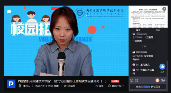 直播现场气氛热烈,学生们积极参与互动。多数学生主要关注岗位晋升、薪资待遇、工作环境等方面的问题。