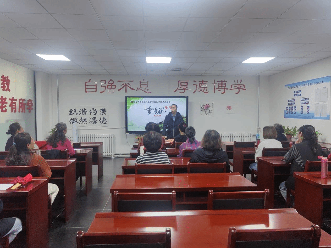 金桂再飘香,佳节又重阳。为弘扬中华民族尊老、爱老、敬老的传统美德,丰富老年人的精神文化生活,增进彼此间的沟通交流。10月11日,内蒙古机电职业技术学院社区学院(老年大学)举办了“乐学敬老”重阳节座谈活动,诚挚邀请了社区居民和老年朋友们欢聚一堂,共襄佳节、共叙往昔。