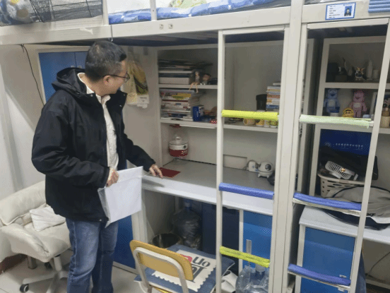 检查按公寓楼分组推进,重点排查管制刀具、易燃易爆物品、违规大功率电器等,同步整治私拉乱接电线、飞线充电、宿舍吸烟等隐患。工作人员对问题逐项记录、建立台账,明确整改责任,同时结合安全案例开展宣传教育,强化学生安全防范意识。