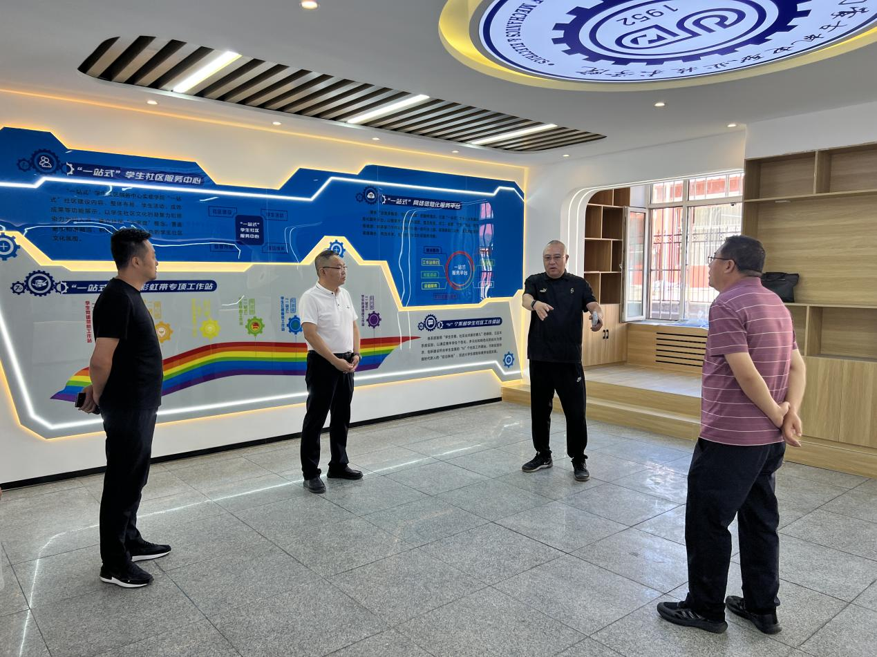 随后,走访了建成的“一站式”学生社区服务中心,了解了我院建设的特色,亮点。呼和书记和高军副书记对我院“一站式”建设给予了肯定,并对今后“一站式”常态化运行提出了宝贵的意见。