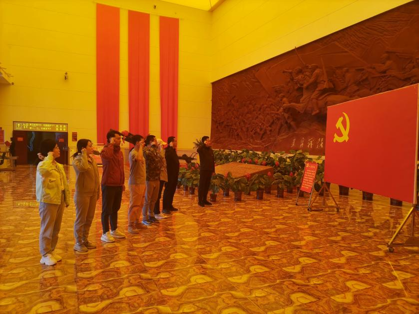 在正式参观集宁战役纪念馆之前,由王卿华带领全体党员重温入党誓词。铿锵有力的宣誓声,表达了大家对党的无限忠诚和热爱,汇聚着矢志不渝听党话、跟党走的坚定决心。