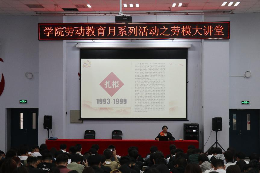 为了增强学生尊重劳动、热爱劳动、崇尚劳动的意识,感受工匠精神和劳模风范,依据自治区教育厅《关于做好2023年全区学生劳动教育宣传月活动的通知》和《内蒙古机电职业技术学院劳动教育实施方案》活动精神,2023年5月25日下午16点,在学院教学楼D区109开展了“弘扬劳模精神,争当时代先锋”主题的劳模大讲堂活动。本次活动邀请了“自治区社区先进工作者、自治区优秀党务工作者、自治区“五一”巾帼标兵、自治区优秀党务工作者、全国巾帼建功标兵、自治区“五一”劳动奖章、自治区十大基层清风干部标兵、全国劳动模范、全国抗疫优秀社区工作者的李一芝做客劳模大讲堂,向我院400余名学生代表讲述自己的勤劳奋进之路。