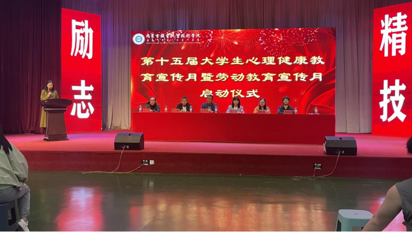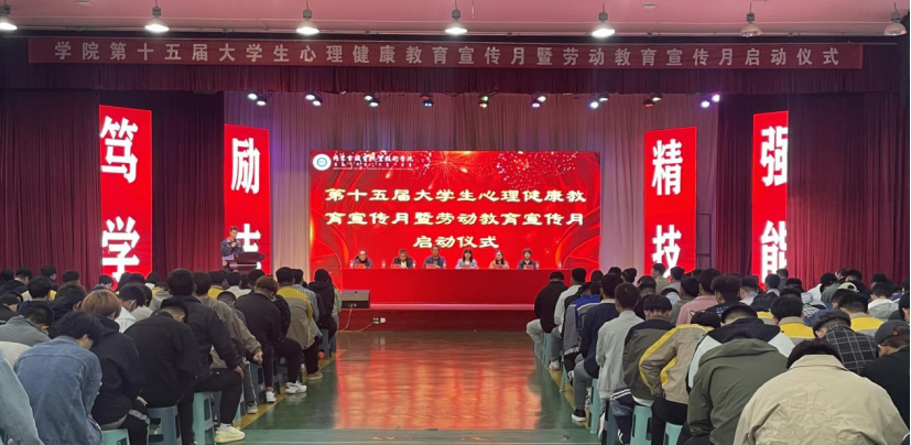 为进一步加强我院心理健康教育工作,宣传普及心理健康知识,增强全院师生的心理健康意识,同时在学生中弘扬劳动精神,在劳动实践中掌握劳动技能,推动校园劳动教育实践,2023年5月12日,学院第十五届大学生心理健康教育宣传月暨劳动教育宣传月启动仪式于学院文体中心正式启动。学生工作处副处长李丽霞、学院团委副书记曹睿、机电工程系党总支副书记李玮光、电气工程系党总支副书记张婷凯、能源与材料工程系党总支副书记青松、车辆工程系副书记布仁、职业培训与中职教育部副主任高晓晶出席,专兼职辅导员老师及班级心理委员代表等400余名同学一同参加了启动仪式。启动仪式由学生工作处大学生心理健康发展中心副主任郭蒙主持。