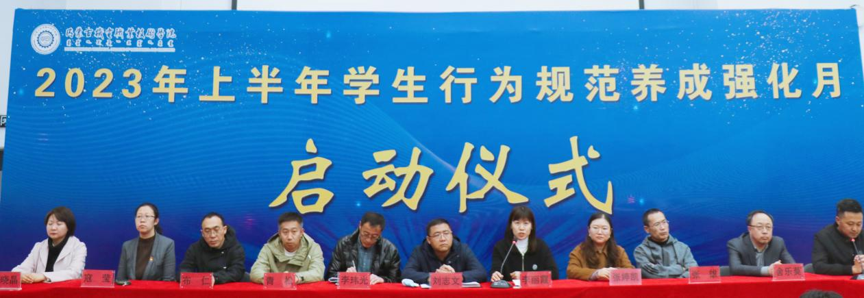 为了营造校园良好氛围,全面提升学生综合素质水平,强化学生日常行为规范,以规育人,提高学生思想道德素养,促进学生全面发展,形成良好的学风、班风。我院于2023年4月3日14:00,在学院教学楼D区109举办了2023年上半年学生行为规范养成强化教育月启动大会,学院学生工作处处长刘志文、副处长王卿华、李丽霞、各系部党总支副书记、副主任、2021级、2022级全体辅导员及全院各班级班干部出席了本次活动。