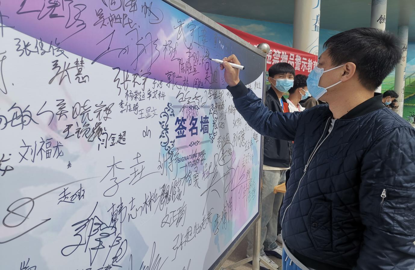 本次活动在食堂前广场对安全标识和公寓安全卫生大检查活动中查收的违禁物品进行了展示。过往同学驻足观看,加深了对安全标识的了解,提升了在遇到紧急情况时及时采取有效措施,遏制危害发生的能力;同时,违禁物品实物展使同学们更加直观、清晰的认识到身边潜在的安全隐患。同学们纷纷签名以示承诺。