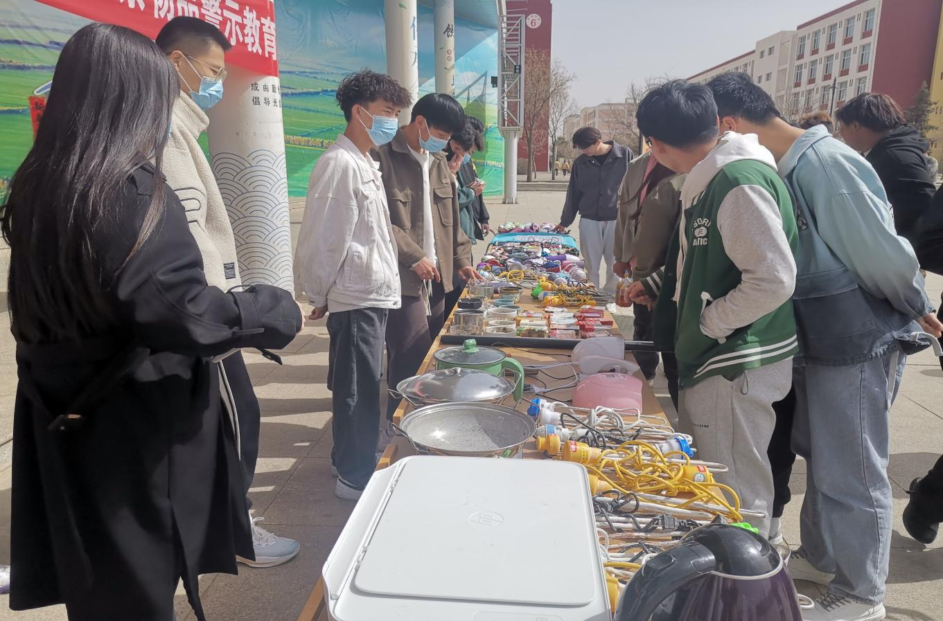 为进一步强化安全防范意识,引导师生积极关注公寓平安建设,提高安全防范能力,3月23日中午,学生工作处学生公寓管理服务中心组织开展了学生公寓“安全图标标识知多少”暨学生公寓违禁物品警示教育展活动。