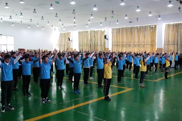 比赛过程中,同学们伴随着音乐的节拍,踏着整齐的步伐,认真做好每一个动作,精神饱满、神采飞扬,充分展示出机电人蓬勃的朝气和不懈奋斗的精神面貌。