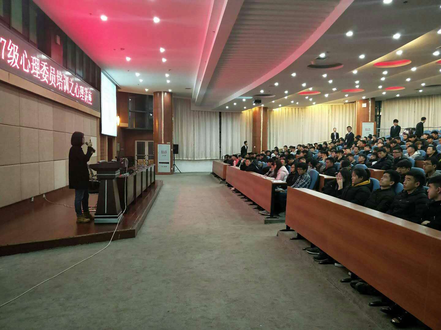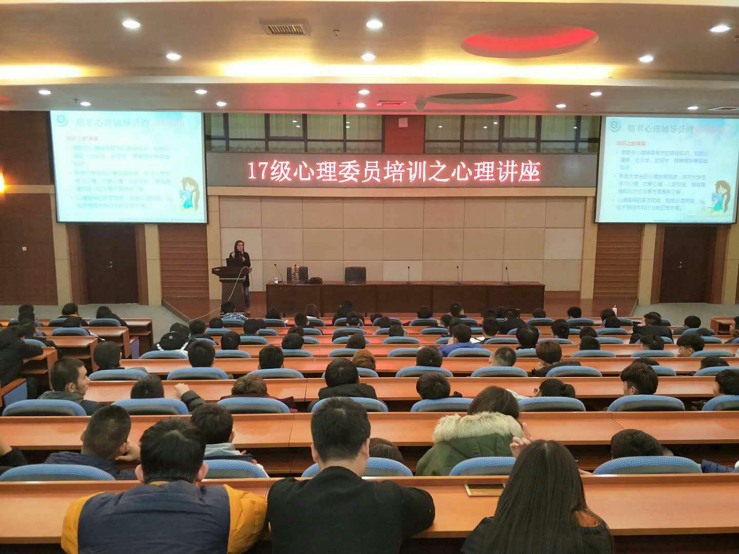 为了发挥朋辈间积极的群体效应和示范效应,增加学生心理健康的自助互助渠道,完善我院的心理健康服务体系。我院大学生心理咨询中心于2017年12月1日下午4:30在图书馆报告厅开展了2017级心理委员的最后一次培训讲座。担任本次培训的是大学生心理咨询中心主任、国家二级心理咨询师李丽霞老师。