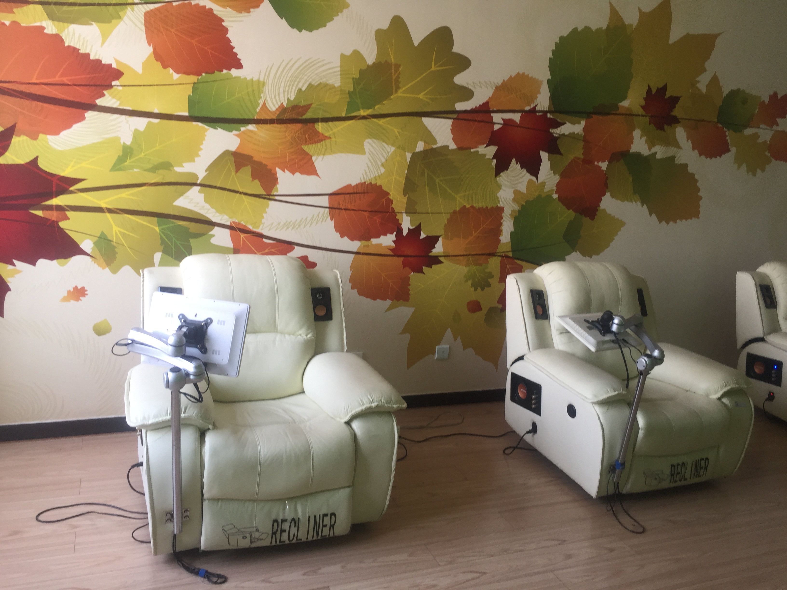跟随讲解员,同学们又来到了音乐放松室,音乐放松室配备有音乐减压治疗系统,运用音乐特有的生理、心理效应,使来访者在咨询师的共同参与下,通过音乐体验,达到消除和缓解焦虑、紧张等不良情绪,消除心理障碍,恢复或增进心理健康。