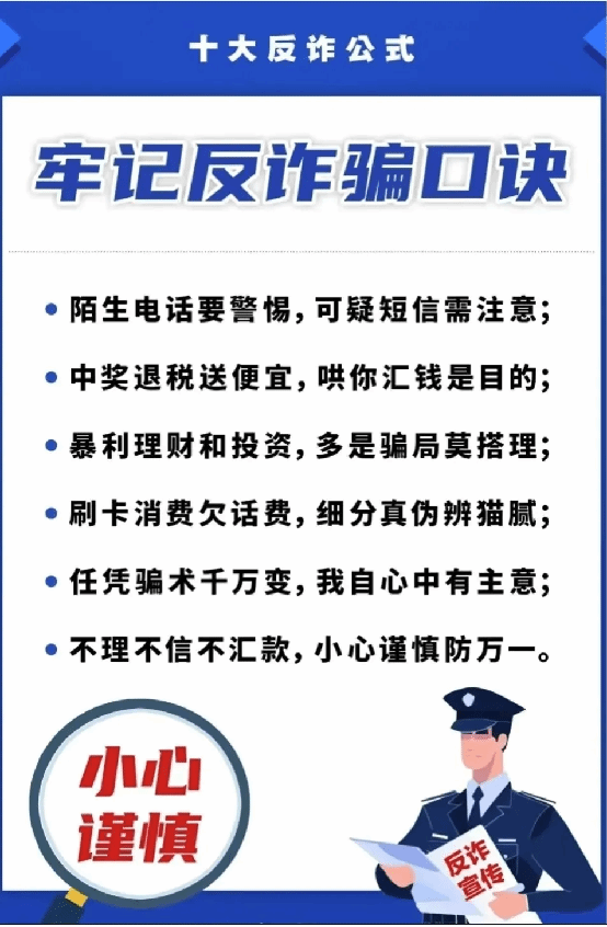 1.不轻信陌生电话、短信和网络信息,不要参与或协助诈骗。