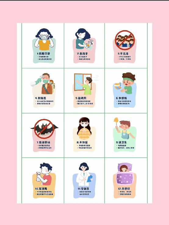 1.注重个人卫生,勤洗手,尤其是在饭前便后、触摸公共物品后,按照 “七步洗手法” 揉搓双手至少 20 秒,确保手部清洁。
