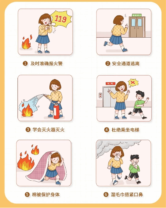 1.熟悉宿舍、教室、实验室等场所的消防设施和逃生路线。
