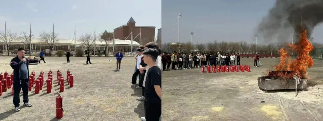 应急疏散演练结束后,消防人员在西投掷场现场模拟着火环境,示范讲解使用灭火器灭火的操作方法,学生代表积极上阵,亲身感受并学习掌握灭火器使用规程和灭火技巧。本次演练过程秩序井然、实际操作性高,达到了预期的目的。