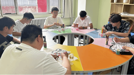 多彩的颜料在风筝上铺开,在制作过程中,同学们脑洞大开,灵感满满,依照着自己的想象尽情填色,在风筝上泼洒着自己的创意,让风筝成为独一无二的艺术品。