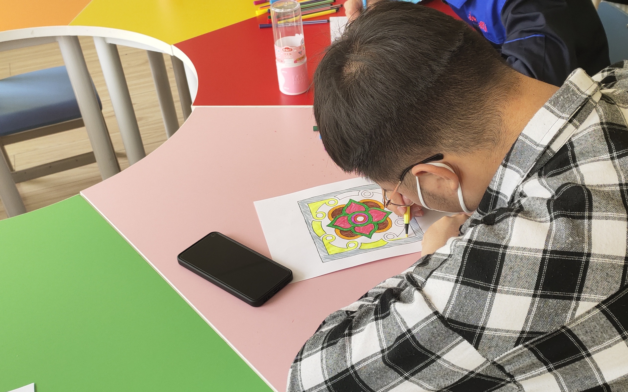 彩绘曼陀罗是一种表达性艺术疗法。通过在曼陀罗画作中填涂颜色达到静心,宣泄心中负面情绪,调适心情,展现内心真实自我的作用。促使身心获得一种平衡,变得更加完整。