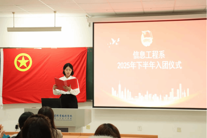 2025年12月18日,信息工程系举行2025年下半年新团员入团仪式。系团学办公室副主任王雪莹、团总支副书记张德古林、优秀团员代...