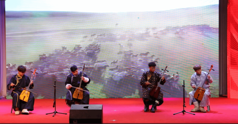 此外,饱含家国情怀的节目更是传递出深厚的民族情感与使命担当。歌曲《天下》《站在草原望北京》抒发了北疆儿女心向祖国、忠于人民的赤子情怀;器乐表演《万马奔腾》气势磅礴,再现了草原儿女奋勇向前的豪迈气概;集体节目《为内蒙古喝彩》《心中的红》以饱满的热情、嘹亮的歌声,表达了对中华民族共同体的认同与坚守;《改变自己》则以励志的歌词与动人的旋律,激励着青年学子为民族复兴贡献青春力量。