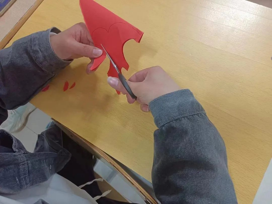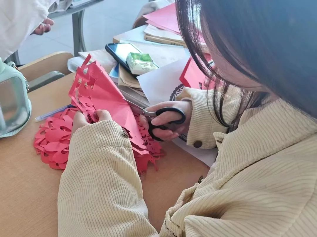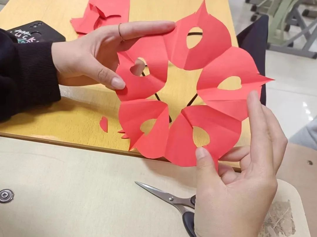 一把剪刀,一张红纸,剪艺传情,指尖乾坤。同学们全神贯注,呈现了一个个灵动的图案,惟妙惟肖,美轮美奂。艺术的生命和魅力在此时完美展现。
